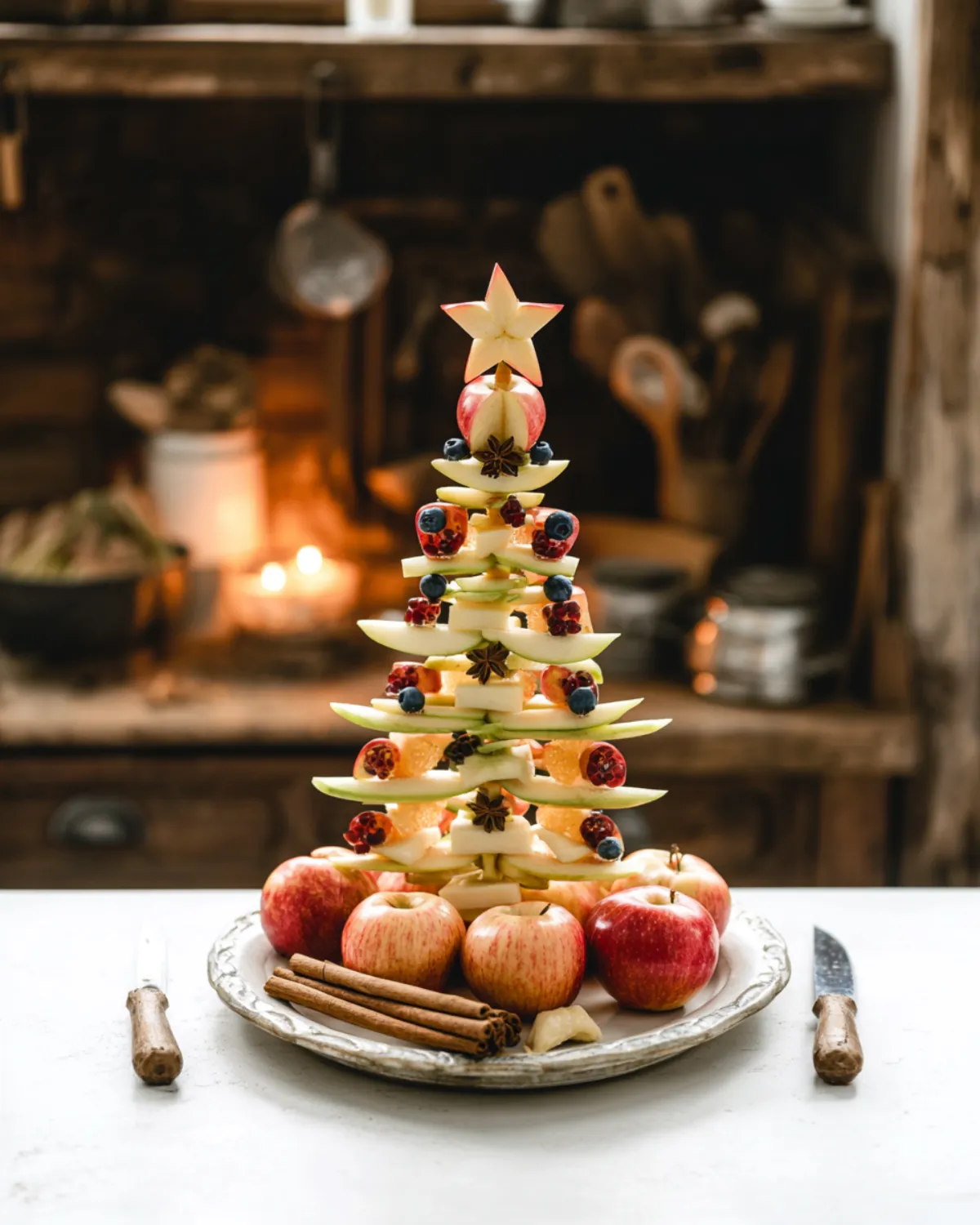 Keywords: holiday recipe, festive snack, healthy treat, apple tree, Christmas dessert