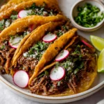 Delicious and satisfying tacos filled with tender, flavorful beef seasoned and slow-cooked with chipotle chilies for a smoky kick.