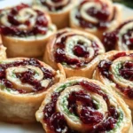 Festive and creamy cranberry pinwheels perfect for holiday gatherings.