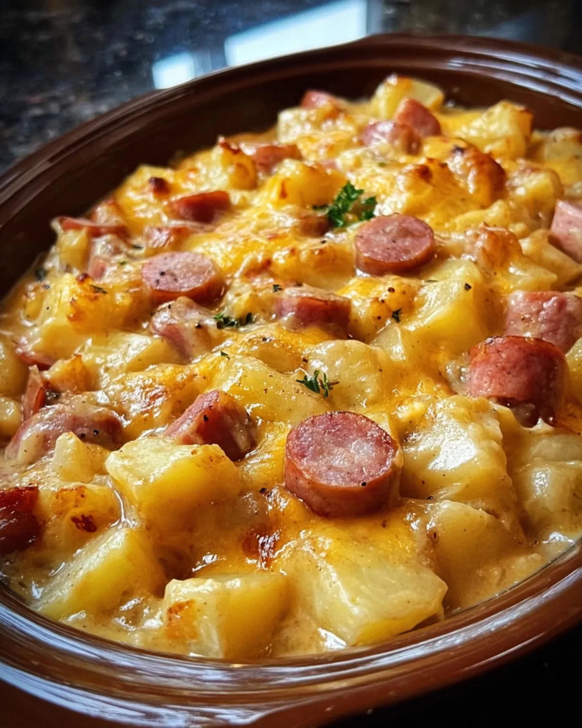 HOW TO MAKE Crockpot Cheesy Potatoes and Kielbasa