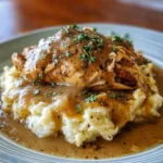 A comforting and easy meal featuring chicken cooked slowly in a rich and creamy gravy.