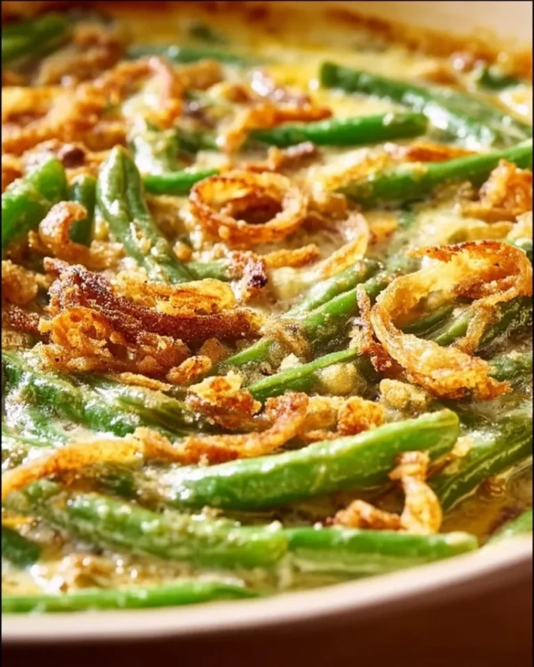 You will love this recipe because it is simple and low work. It uses few ingredients you likely already have. The sauce is creamy and mild, and the fried onion topping adds a crunchy finish. It bakes in one dish and serves many people. This is a good recipe for busy nights and for holiday meals when you want a classic side without long work. The flavor is mild, so most people, including kids, enjoy it.
