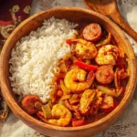 A hearty and comforting slow-cooked jambalaya featuring chicken, sausage, and shrimp.