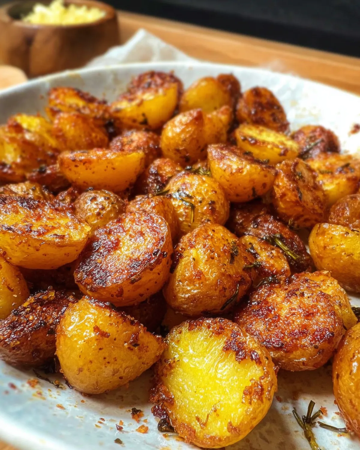 - Serve: Once the potatoes are done cooking, remove them from the oven. Drizzle the garlic butter over the crispy potatoes and toss gently to combine.