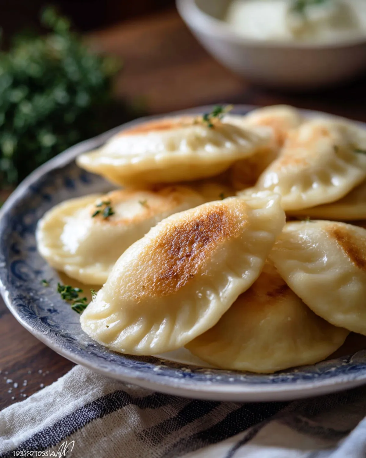 Gluten-free perogies are best enjoyed warm. They can be served with melted butter or served with sour cream for dipping. You might also like to add sautéed onions or crispy bacon bits on top for extra flavor. Fresh herbs like chives or parsley can also brighten the dish! Feel free to get creative with your presentation!