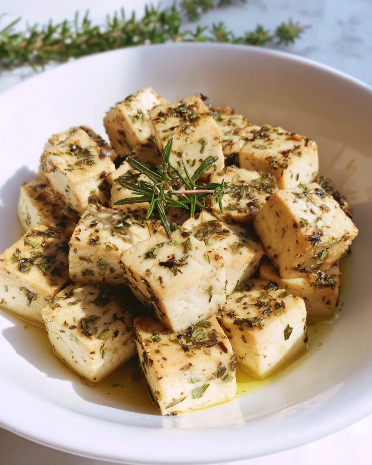 A simple and tasty dish featuring extra firm tofu marinated in lemon and herbs, perfect for any meal.