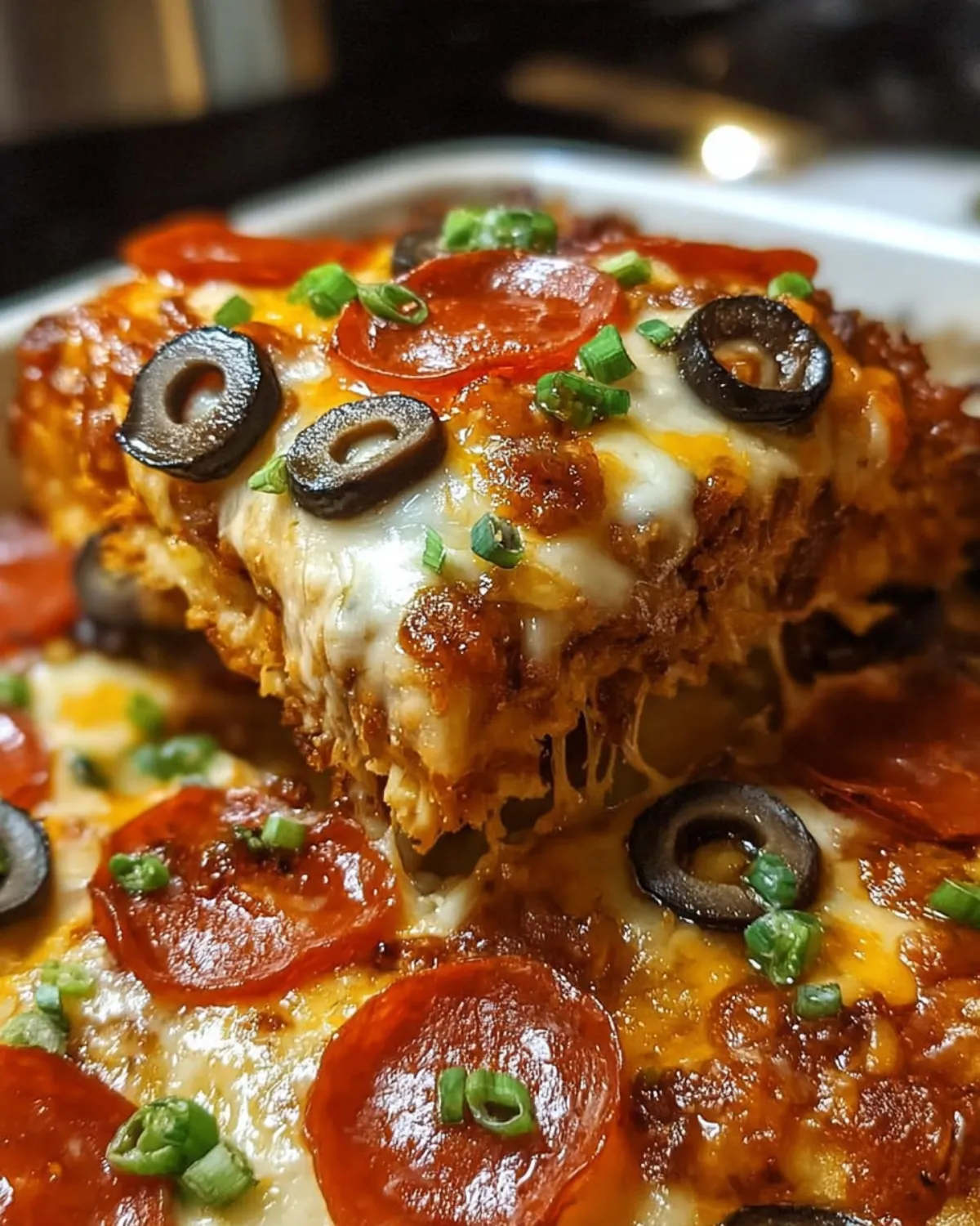 A delicious casserole that captures the flavor of pizza while being low in carbohydrates. Perfect for gatherings and easy to customize.