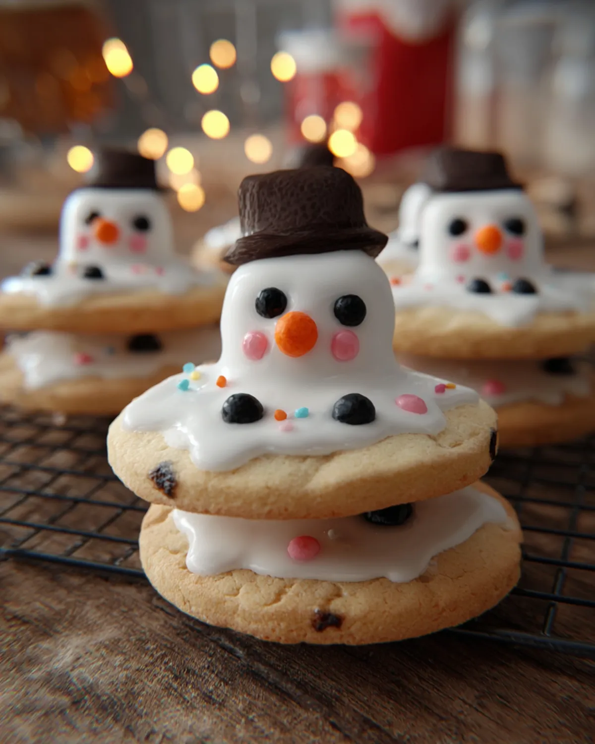 Adorable and delicious melted snowman biscuits, perfect for holiday celebrations and fun baking activities with kids.