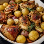 A simple and delicious one-pan meal featuring juicy chicken and tender baby potatoes, perfect for busy weeknights.