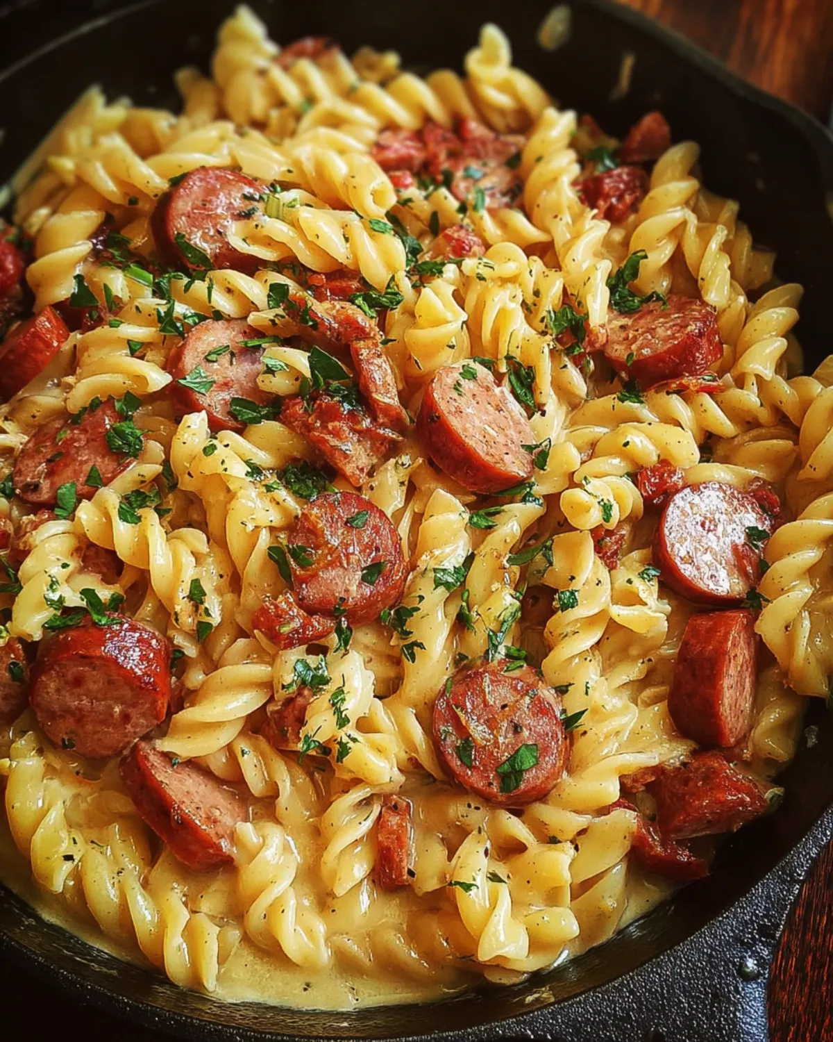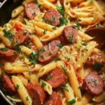 A creamy and flavorful one pot meal featuring kielbasa sausage and pasta, perfect for busy days.