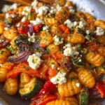 A delightful dish combining soft gnocchi, roasted vegetables, and creamy feta cheese, perfect for lunch or dinner.
