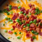 A creamy, hearty potato soup cooked in a slow cooker, perfect for chilly days.