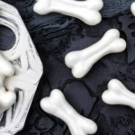Creepy, cute bones made from egg whites and sugar, perfect for Halloween celebrations.