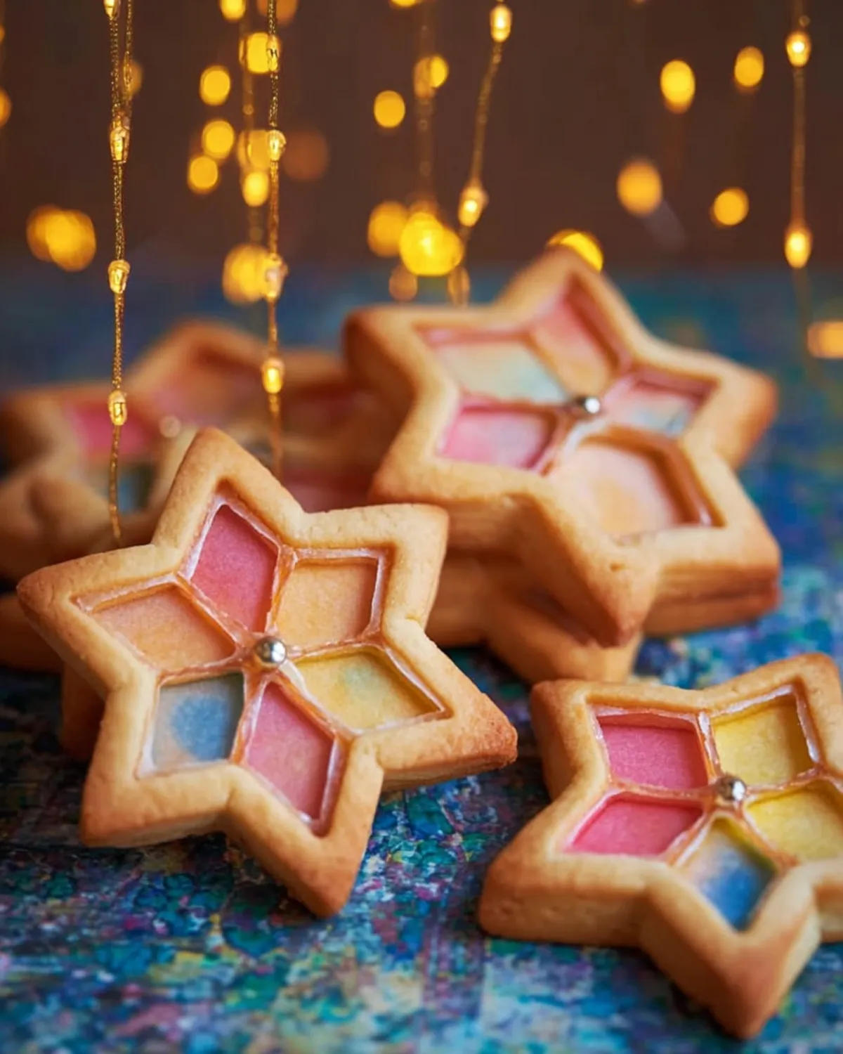 Keywords: cookies, stained glass, biscuits, baking, colorful treats, holiday sweets