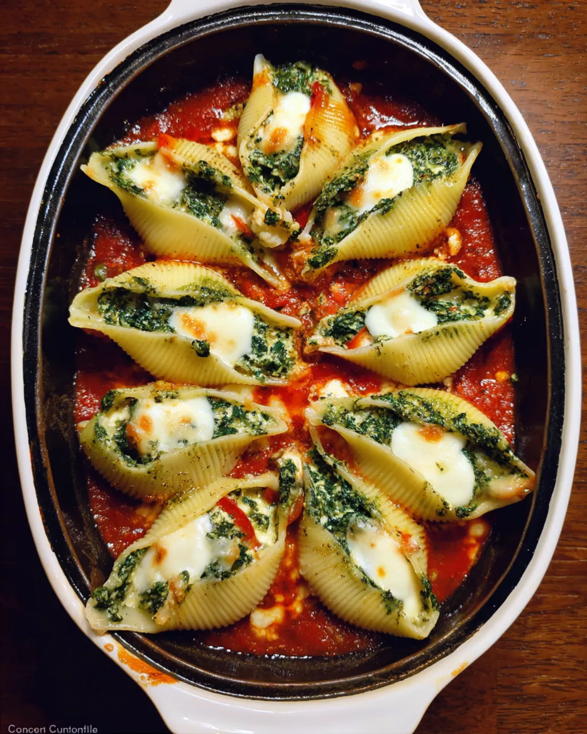Delightful stuffed pasta shells filled with spinach, peppers, and mozzarella, topped with tangy tomato sauce and baked until golden.