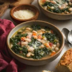 A hearty and healthy soup made with creamy white beans, fresh kale, and savory vegetables, perfect for a cozy meal.